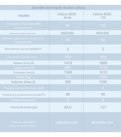 Chaudière à bois Celsius 90-125 KW bûche 120 cm :